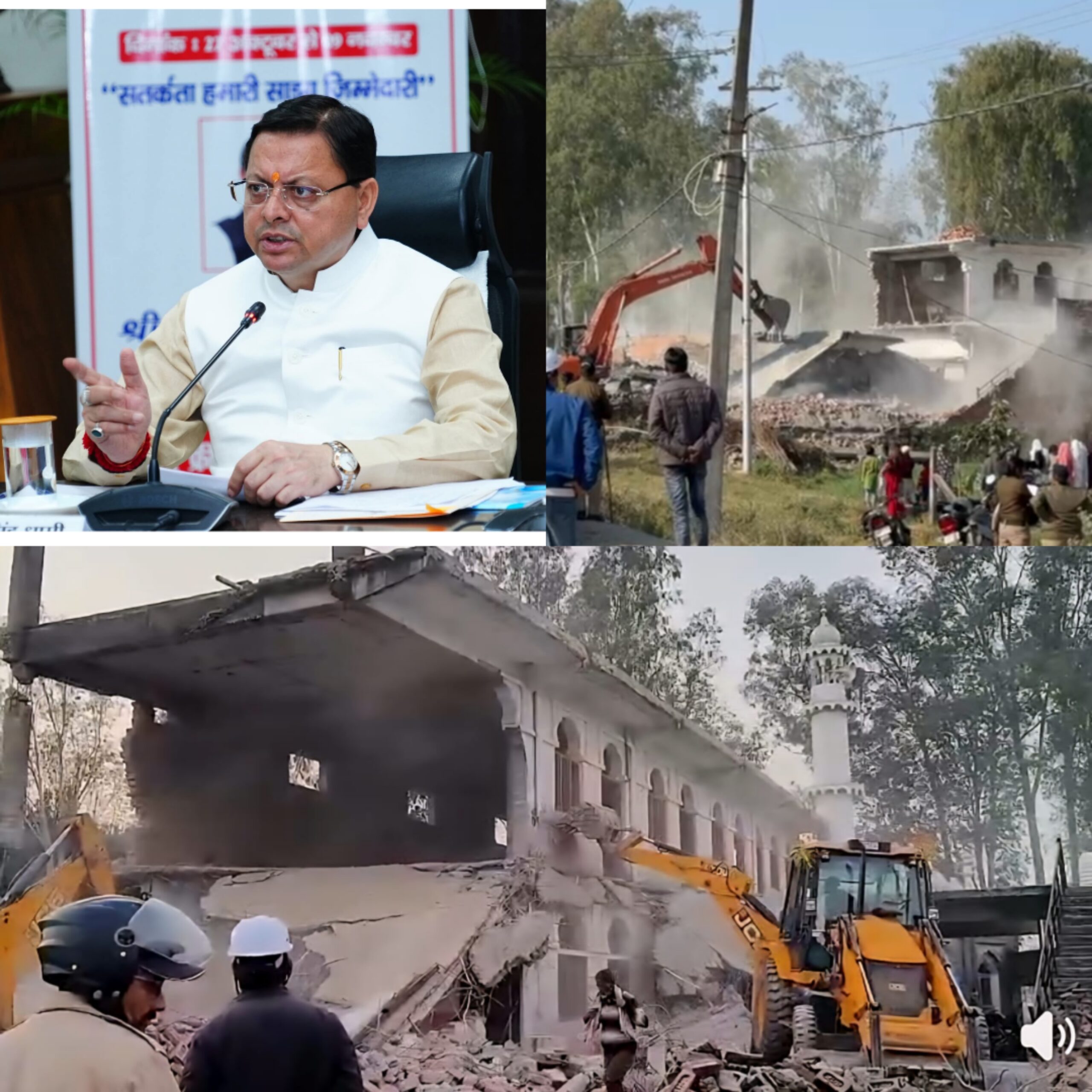 धामी सरकार का बुल्डोजर गरजा — शक्ति नगर में अवैध कब्जों पर धामी की कड़ी कार्रवाई, मदरसा-मस्जिद सहित 65 से अधिक निर्माण ध्वस्त