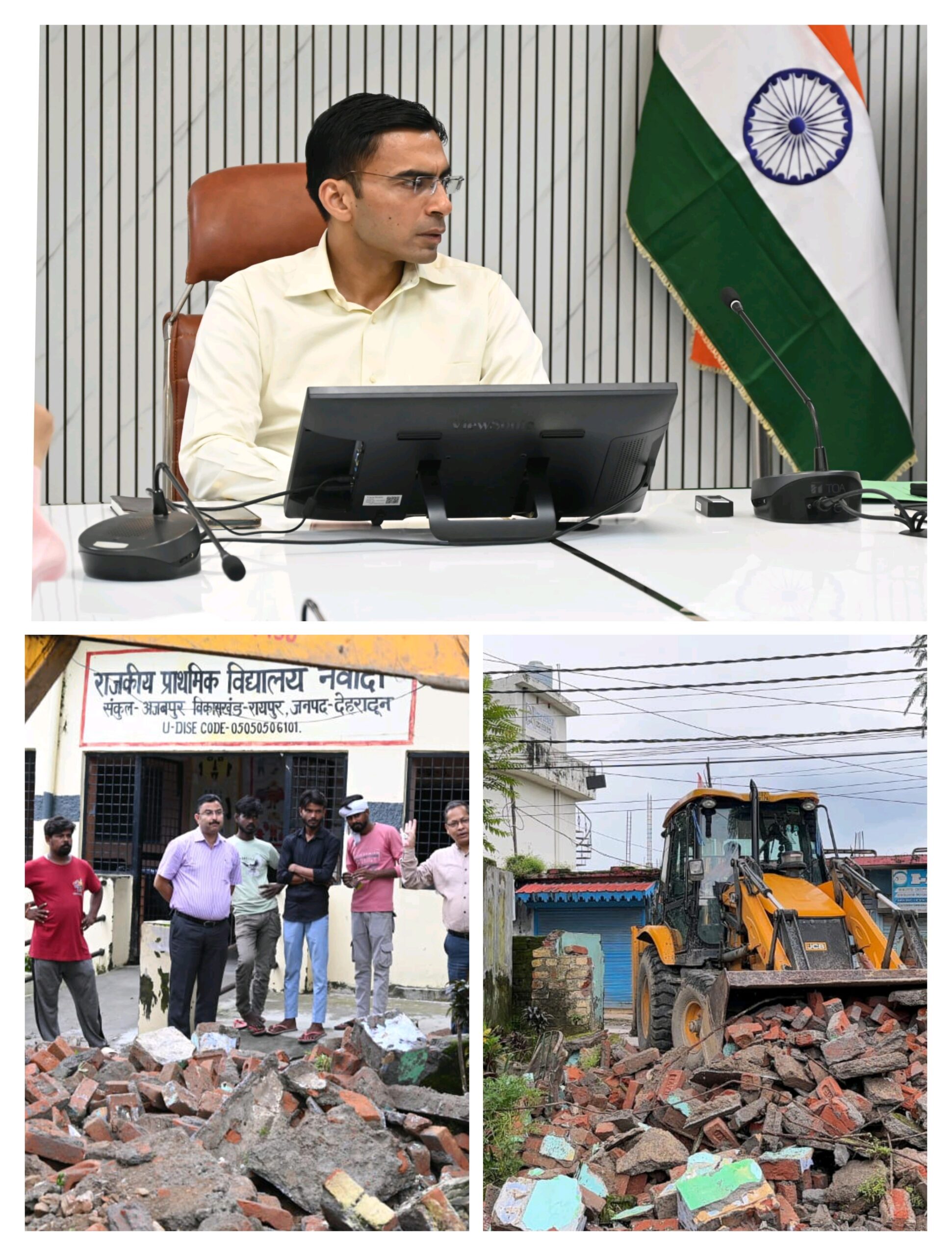 देहरादून दिनांक 23 अगस्त 2025 (सू.वि), जिलाप्रशासन देहरादून ने सरकारी भूमि पर अतिक्रमण कर किए गए निर्माण को हटा दिया गया है। राजकीय प्राथमिक विद्यालय नवादा परिसर में बनी अवैध निर्माण कर बनाई गई मजार को आज ध्वस्त कर दिया। जिला प्रशासन को शिकायत प्राप्त हुई थी कि स्कूल परिसर में सरकारी भूमि पर अवैध निर्माण कर मजार बनाई गई है, जिससे बच्चों की पढ़ाई का वातावरण भी प्रभावित हो रहा है।